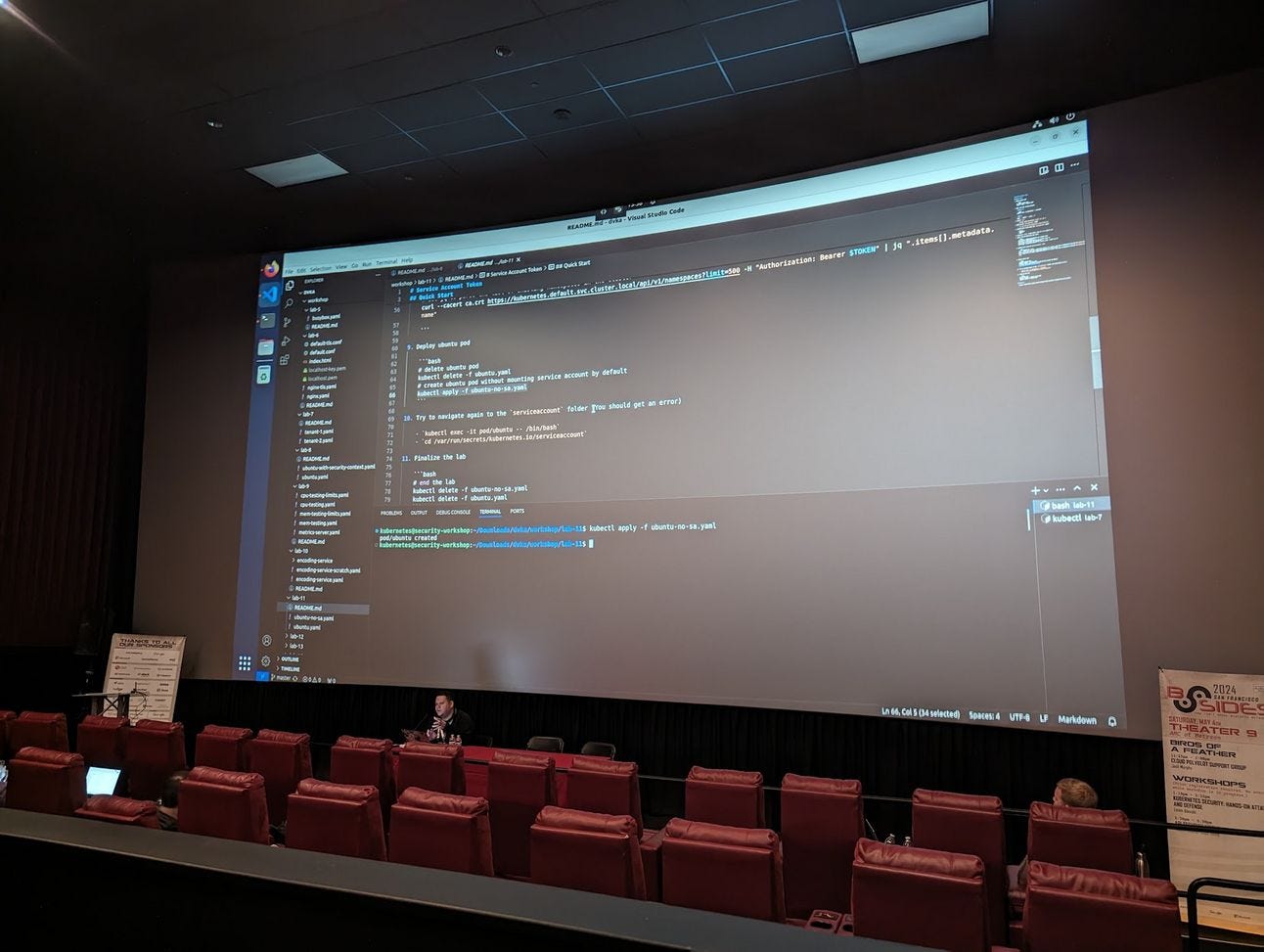 So if it wasn’t clear, yes all the talks are held IN the movie theaters. As I’m writing this I am in the Dolby Cinema theater attending “Insecurity Protocols: An Overview of Modern Authentication”. Identity and Access Management (IAM) is a long time favorite of mine, so it seemed like a good place to commiserate in the vulnerabilities we see everyday. Although technically, it’s usually more of a misconfiguration issue than inherent “vulnerabilities”.
